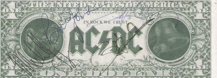 Mirad que regalito le han hecho a nuestro amigo Aran (ancendencen). Unos Angus dolares firmados por el propio Angus (dos veces), Malcolm, Cliff y Brian a la finalización de un concierto de la gira 'The Razor's Edge'. Aunque falta la firma de Chris Slade, el regalo es acojonante. Por cierto, el tío hace días que no dueme, ¡mirad su cama!