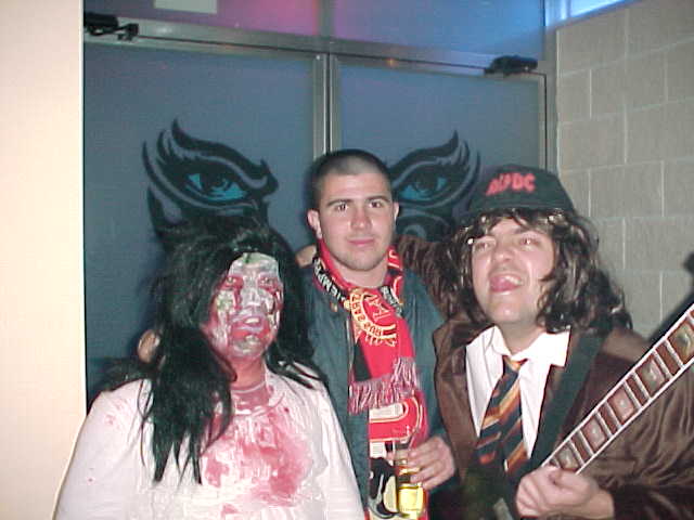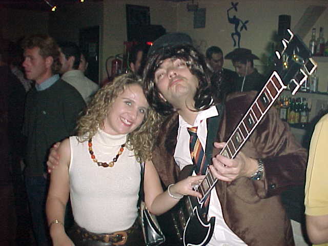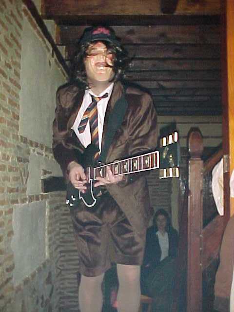 Atentos a las fotografías de Gonzalo A. en los carnavales del 2001. El tío se disfrazó de Angus y, según nos explica y se aprecia en las fotos, agarró una cogorza monumental y sin saber muy bien cómo se encontró con que había ganado el primer premio (20.000 ptas) en la discoteca tras una (dicen, porque