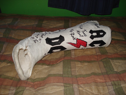 Nuestro amigo chileno Franco se lesionó una pierna y se la tuvieron que enyesar. Mirad como le decoraron el yeso.