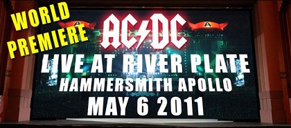 Según ha informado Columbia Records el próximo 6 de mayo se producirá la presentación mundial del nuevo DVD/Blu-ray 'AC/DC Live At River Plate' en la mítica sala HMV Hammersmith Apollo de Londres y se proyectará en la que dicen es la mayor pantalla de cine del Reino Unido. Recordad que este trabajo ha sido grabado en alta definición utilizando 32 cámaras.En la página oficial de AC/DC en Estados Unidos los fans americanos pueden ganar un viaje a Londres para asistir el próximo 6 de mayo a esta presentación. En la página oficial inglesa sortean 750 tickets para asistir al evento haciendo la pre-compra de este trabajo.