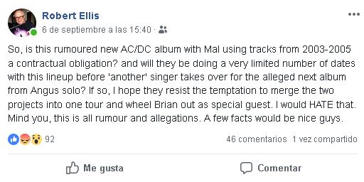 También dice que la formación que está grabando el disco realizaría un número limitado de conciertos para más tarde entrar un nuevo cantante que sustituiría a Brian Johnson para también trabajar en el proyecto de Angus en solitario.