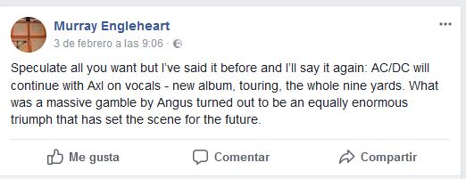 - MURRAY ENGLEHEART COMENTA QUE AC/DC CONTINUARÁ CON AXL ROSE (05/02/2018)