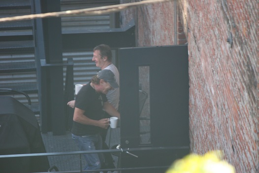 Atentos a la fotografía tomada por un fan de la banda hace tres días desde un apartamento cercano a los Warehouse Studios en Vancouver (Canadá). En esta fotografía podemos ver a Brian Johnson y a Phil Rudd departiendo amigablemente.