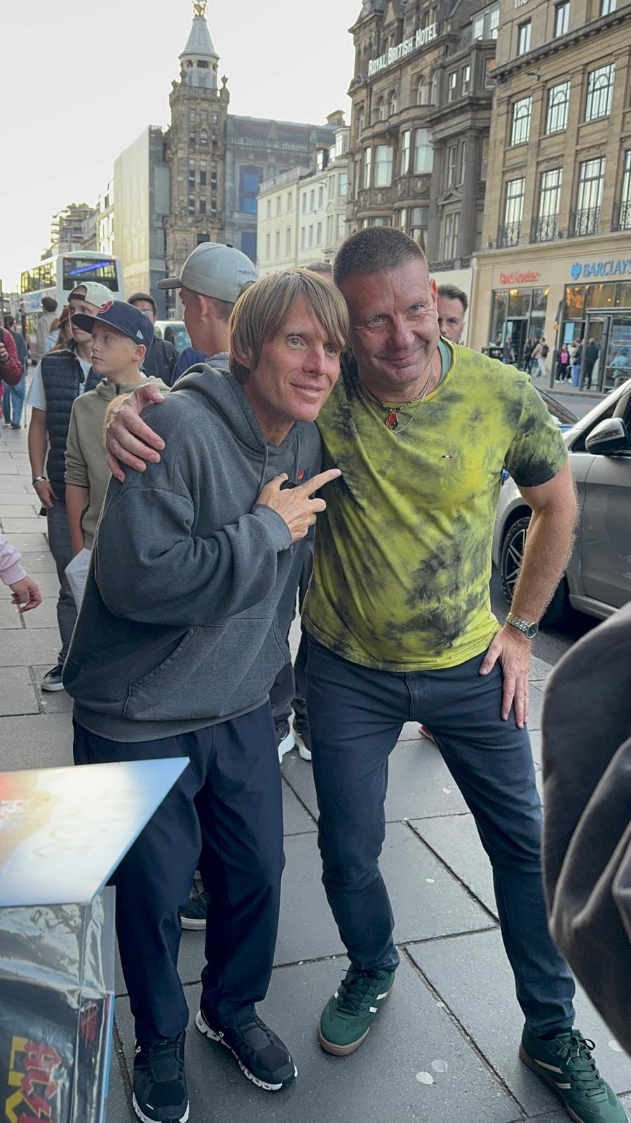 En agosto de 2025 Jara estuvo en Edimburgo (Escocia) para asistir al último concierto en Europa del Pwr Up Tour 2025. Allí, visitando el hotel donde se alojaba la banda, pudo hacerse unas fotografías con Chris Chaney y Matt Laug.