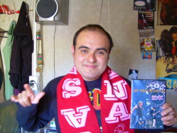 Y el ganador, David, R., nos ha hecho llegar unas fotos con sus dos amores: AC/DC (nos muestra el DVD del premio) y su equipo de fútbol, el C.D. LA Serena.