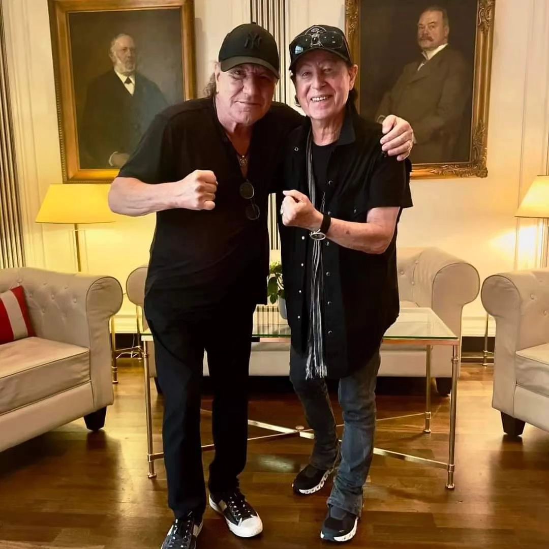 ![]() | Aprovechando la visita de AC/DC a la ciudad alemana de Hannover dentro del Pwr Up Tour Klaus Meine, vocalista de Scorpions, compartió un rato con su amigo Brian Johnson. |