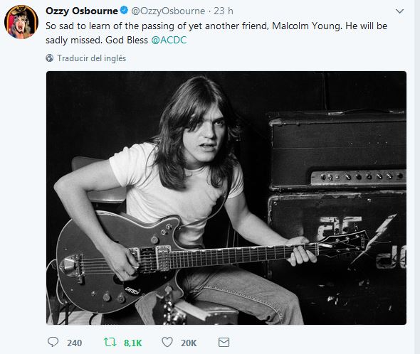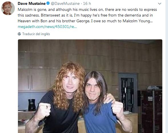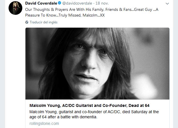 “Con profunda tristeza os informamos del fallecimiento de Malcolm Young, amado esposo, padre, abuelo y hermano. Malcolm había estado sufriendo demencia durante varios años y falleció en paz junto a su familia en su cama“.