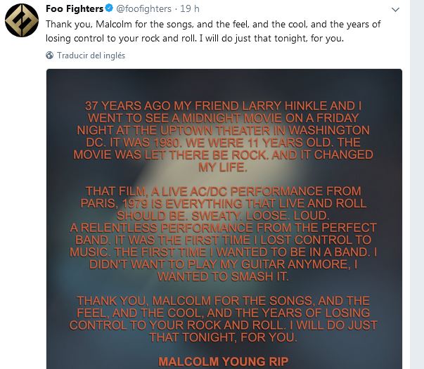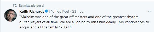 En la web oficial de la banda aparecían estos escritos el día del fallecimiento de Malcolm Young, el 18 de noviembre de 2017: