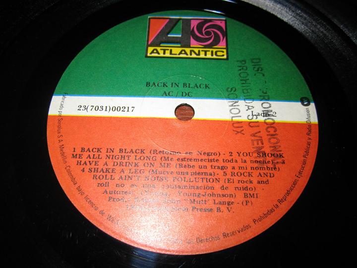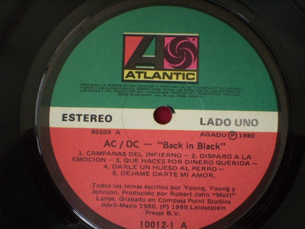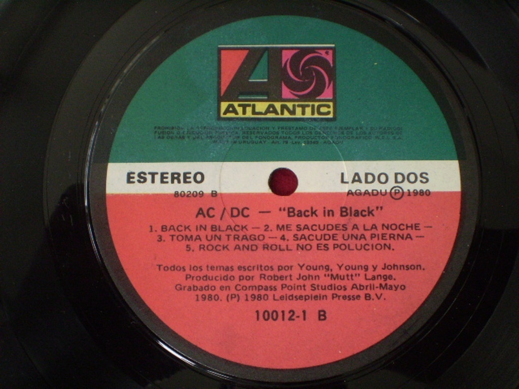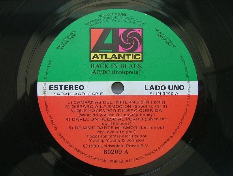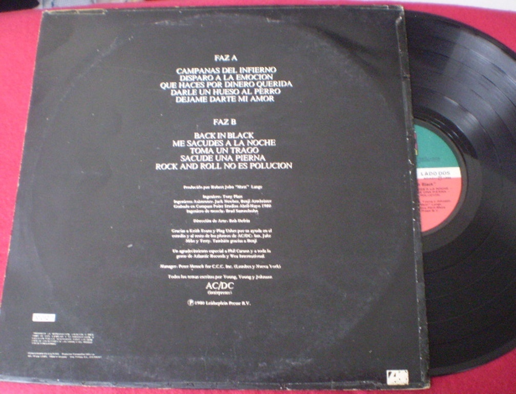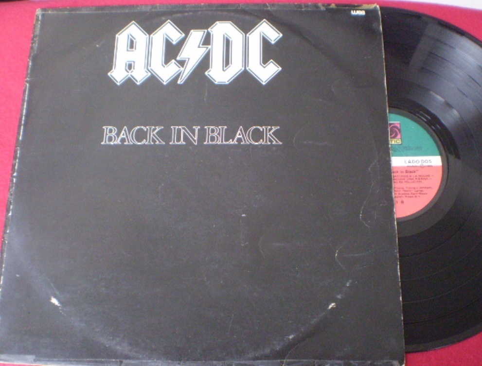LP 'Back In Black' (1980). El título del álbum no ha sido modificado. Se han traducido todos los temas a excepción del que da nombre al disco.