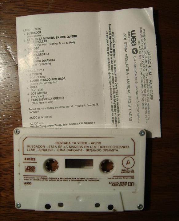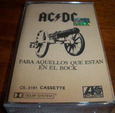 Cassette 'For Those About To Rock (We Salute You)' (1981). 'Para Aquellos Que Están En El Rock (Nosotros Los Saludamos)'.