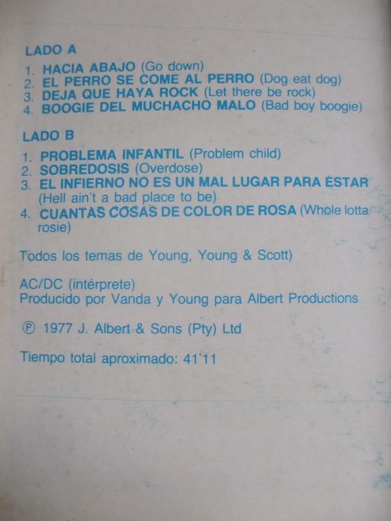 Cassette 'Let There Be Rock' (1977). 'Deja Que Haya Rock'.
