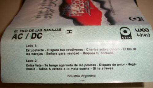 Cassette 'The Razors Edge' (1990). 'El Filo de las Navajas'.