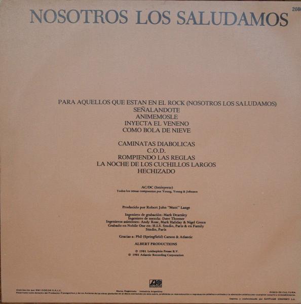 LP 'For Those About To Rock (We Salute You)' (1981). 'Para Aquellos Que Están En El Rock (Nosotros Los Saludamos)'.