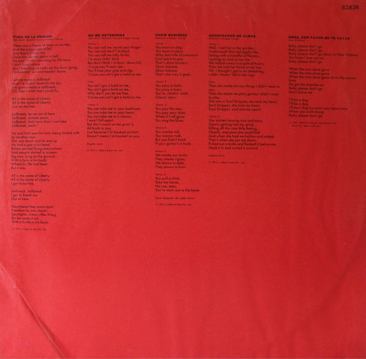 LP 'High Voltage' (1976). 'Alto Voltaje'.