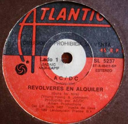 Single 7" 'Guns For Hire' (1983). 'Revólveres En Alquiler'.