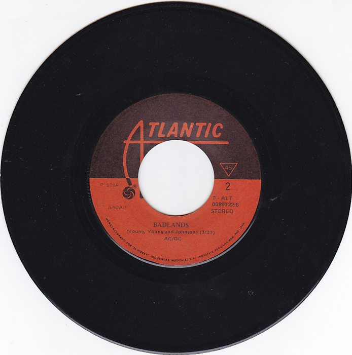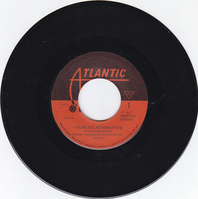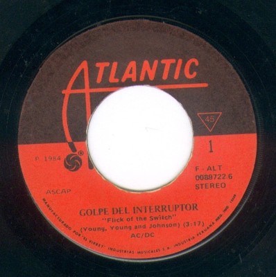 Single 7" 'Flick Of The Switch'/'Badlands' (1984). 'Golpe del interruptor'/'Badlands'.