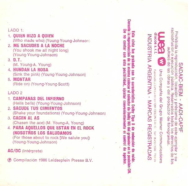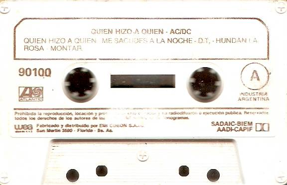 Cassette 'Who Made Who' (1985). 'Quién Hizo a Quien'.