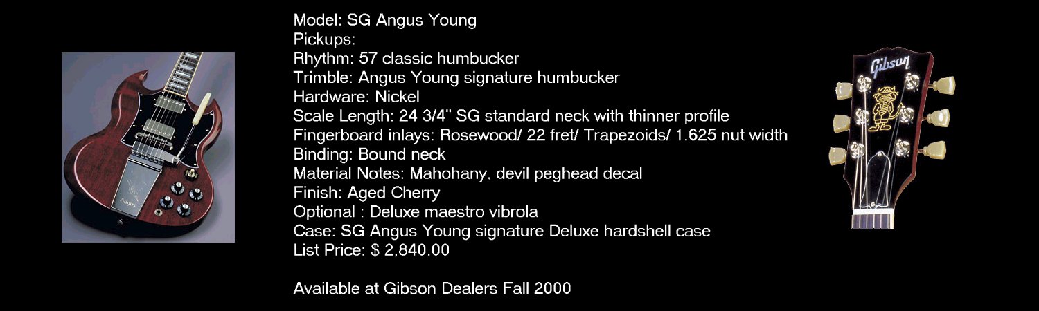 La casa Gibson, aprovechando la popularidad de Angus, ha puesto en circulación un modelo denominado Gibson Angus Young Signature.