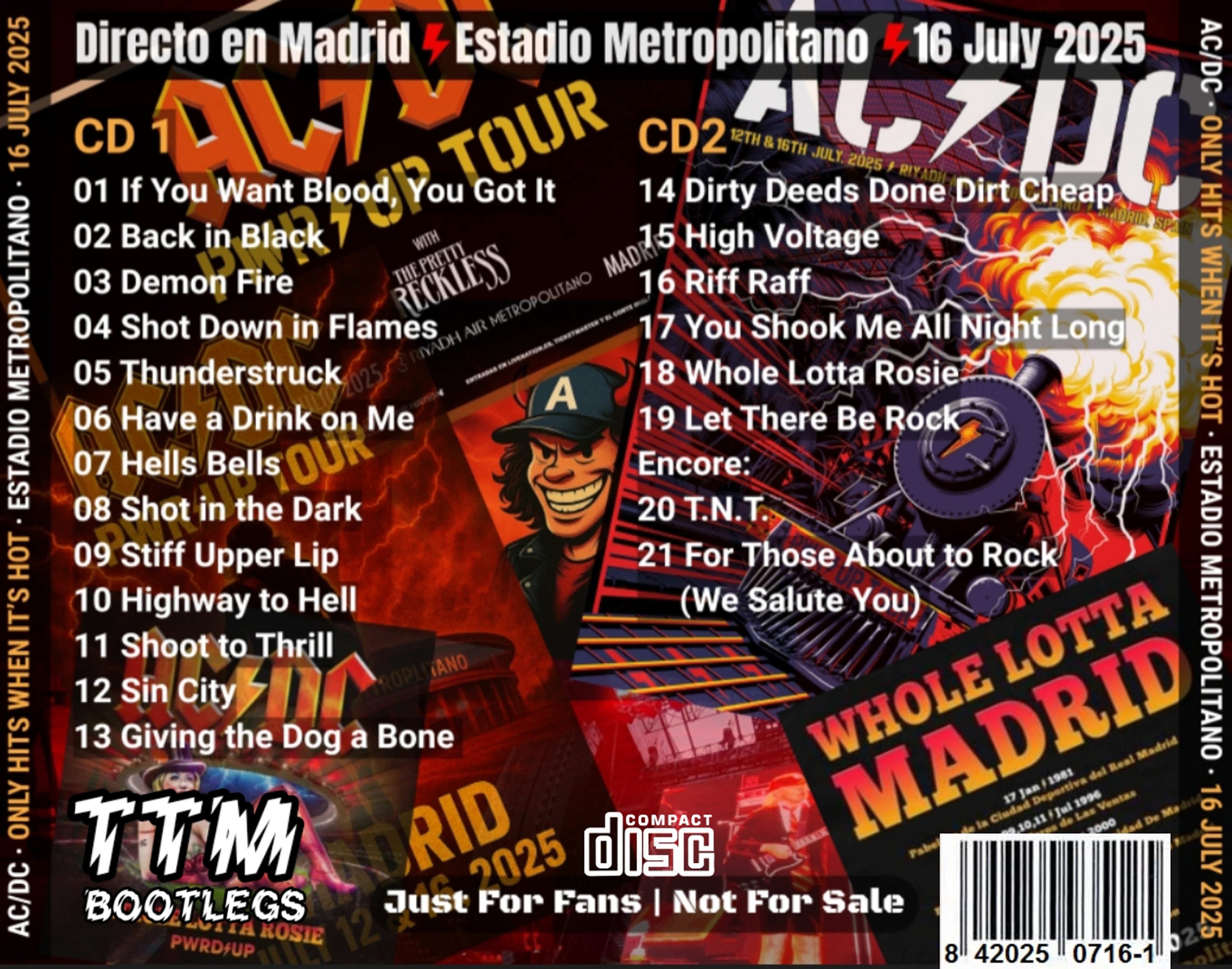 Aquí tenéis los bootlegs correspondiente a los dos fantásticos conciertos que ofrecieron en Madrid el pasado 12 y 16 de julio de 2025 dentro del Pwr Up Tour.Leed a continuación la crítica de Jesús de estos trabajos: