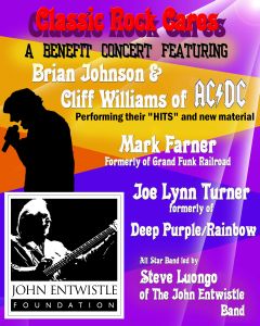 Brian Johnson y Cliff Williams encabezarán una serie de conciertos benéficos, que se denominarán "Classic Rock Cares", que se celebrarán durante el mes de julio. Tocarán con peña de Rainbow (Joe Lynn Turner), Grand Funk Railroad (Mark Farner) y la John Entwistle Band (Mark Hitt y Steve Luongo).