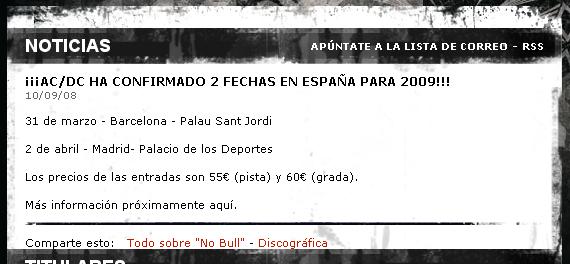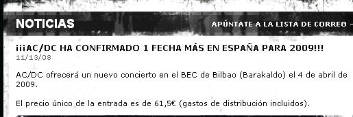 - CONFIRMADO EL CONCIERTO DE BILBAO EN www.acdcrocks.com (13/11/2008)