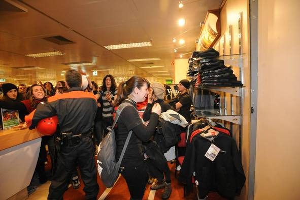Agentes de la Ertzaintza tuvieron incluso que acudir a la séptima planta de El Corte Inglés de Bilbao, donde una multitud se negaba a aceptar que el gran centro comercial sólo tuviese capacidad para despachar seis entradas, cuando el primer comprador había pasado toda la noche haciendo cola. Los agentes se dirigieron luego a la cercana tienda de la FNAC, que bajó la persiana una hora. Muchos frustrados compradores no estaban dispuestos a abandonar el lugar sin una explicación que no llegaba.