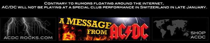 Esta última noticia ha sido desmentida desde la misma web oficial del grupo www.acdc.com. Concretamente en la web se afima lo siguiente: "Contrariamente a los rumores que circulan por internet, AC/DC no realizará una actuación especial en un club en Suiza a finales de enero."