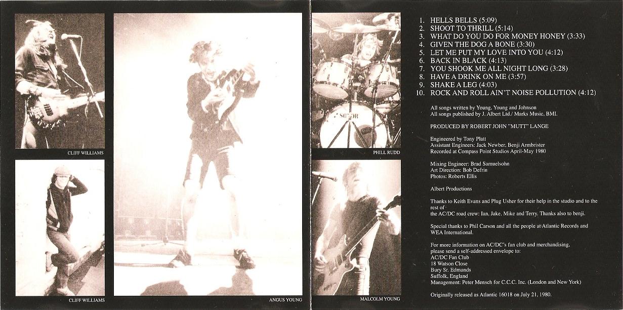 - EDICIÓN CHILENA DEL CD 'BACK IN BLACK'. BAJO LA FOTO DE BRIAN JOHNSON PUEDE LEERSE EL NOMBRE DEL BAJISTA CLIFF WILLIAMS. ESTE CD FUE FABRICADO Y DISTRIBUIDO POR WARNER MUSIC CHILE S.A.