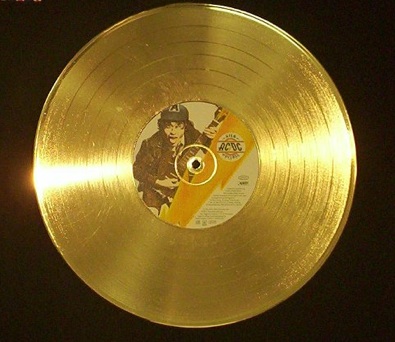 - DISCO DE ORO RECIBIDO POR AC/DC EN 1976 POR SUPERAR LOS 500.000 EJEMPLARES VENDIDOS DEL DISCO 'HIGH VOLTAGE'.