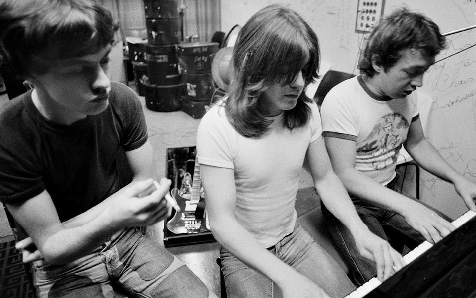 - FOTOGRAFÍA DE ANGUS, MALCOLM Y GEORGE YOUNG TOCANDO EL PIANO.