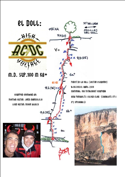- VÍA DE ESCALADA DEDICADA A AC/DC. En las diferentes modalidades de escalada, los escaladores gradúan las vías basándose en diferentes factores como la dificultad técnica, el peligro, la exposición y la dificultad para asegurarse. En la pared de Doll (Lleida) hay una vía de escalada dedicada al tema 'High Voltage' (gracias a Roger).