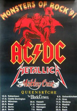 - CARTEL 1 - CARTEL 2. Carteles del concierto suspendido en Madrid correspondiente al Monsters of Rock de 1991. Este concierto fue finalmente trasladado a Barcelona y se celebró el 24/09/1991.